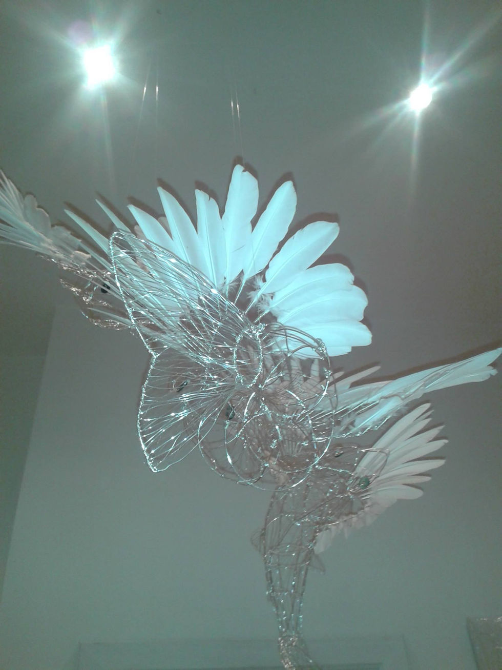Materials - collected dove feathers, silver coated copper wire, abalone shell